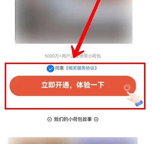 进入小程序页面后,点击下方的【立即开通,体验一下】按钮。