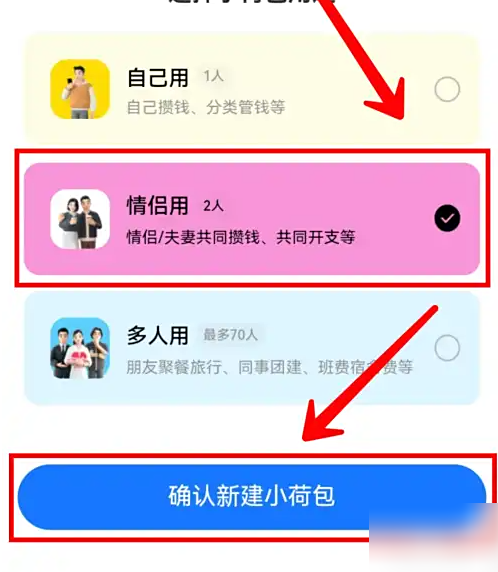 进入申请开通的页面,选择荷包的用途,再点击【确认新建小荷包】,即可开通支付宝小荷包。