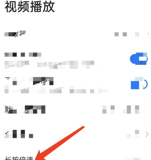 5、在视频播放菜单栏中,找到长按倍速选项,点击进去,如图所示。