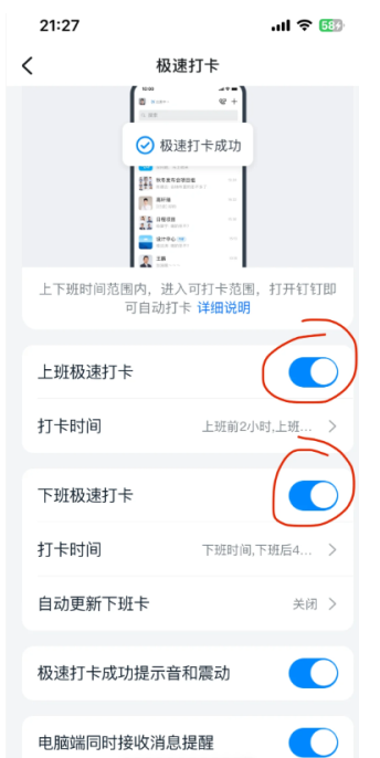 3.试验了几天都成功了,如图1,都是它自己打的。还有一些小tips,就是记得把平板的常亮关了,不然它把钉钉打开后就一直亮着,有一天给我平板干没电了,还好我第二天早上看了一眼手机版,手动打卡的。