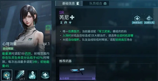 黑盾系统征募达到50抽时,玩家可自选一名SSR队员;而且首次50抽必定获得SSR,能直接激活潜能插件来提升战力。后续每累积300抽,同样可以自选SSR。这里建议优先选择梅洛,用她替换通过剧情获取的R级重盾角色【留声】。梅洛的大招集护盾、嘲讽与补充伤害于一体,是游戏前中期综合能力最全面的重盾队员。