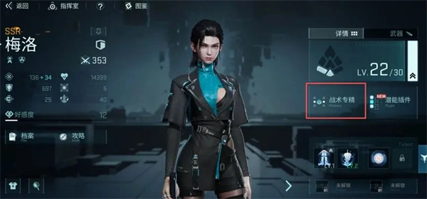 技能分为大招、战技、专属天赋三种类型。当突破等阶达成后,可进入【战术专精】界面,消耗突破材料与充能精核来完成激活和升级操作。所需材料能够通过扫荡主线关卡获取。
