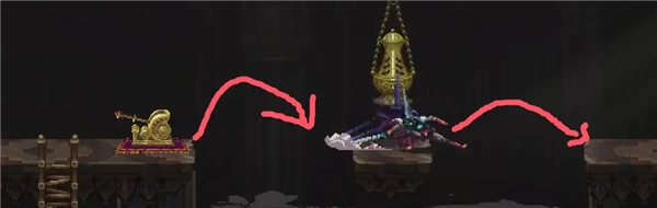 ⑦进来后先清理跳跳怪(跳跳怪也会被晃来晃去的香炉消灭,可以利用这个特点)。接着在中间的红台阶处蹲好,等香炉经过后就开始往上走。