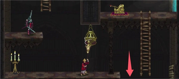 回到大厅,走两个平台然后跳下来。