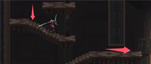 下来后跳到右侧的平台上,顺着这一层平台一直往右走。