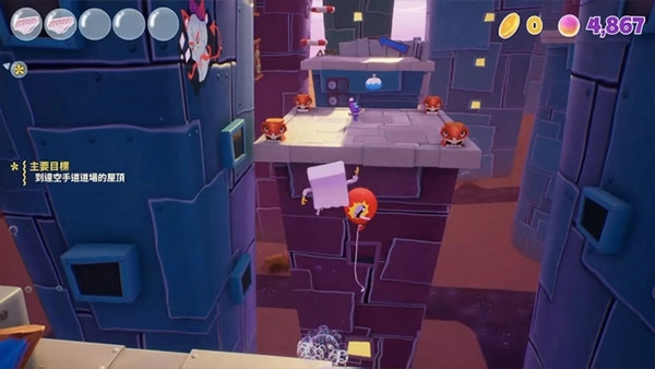 角色的主要攻击方式只需一键就能触发,而且是能覆盖全方位的旋转攻击;对付远距离敌人时,可以用泡泡将他们困住一段时间,这个泡泡还带有自动瞄准功能。虽然后续会解锁空手道飞踢之类的新招式,但因为敌人的攻击模式比较单调,加上死亡没有任何惩罚,游戏难度属于“四肢健全就能通关”的级别。顺便说一句,游戏的操作性意外地不错,尤其是跳跃的定位非常精准,相比前作有了很大的提升。