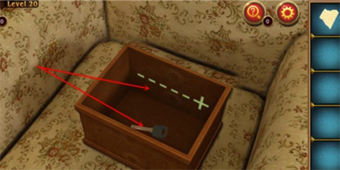 先点击门,接着点击沙发上的盒子,按照表针移动的位置去点击盒盖上的字母,等所有字母都正确亮起后,盒子就会打开,此时收取钥匙。
