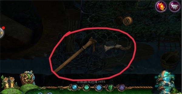 点击左侧的齿轮,使用【钳子】剪断铁丝;清除所有卡住轮子的杂物;先找到【锯子】锯断木棍;接着找到【钩子】勾出树叶中的【锥子】;将【锥子】放置在石头堆里,最后用【锤子】敲击,挪开石堆;完成游戏,获取【起重器】。