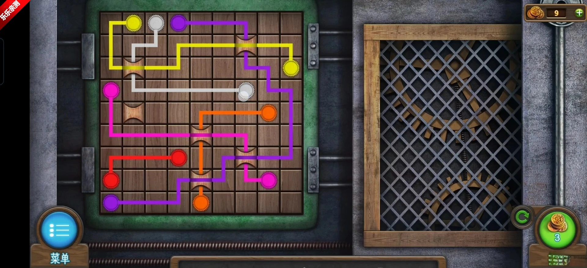 点击门上的拼板,遵循相邻部分颜色一致的规则,将拼板移动至左侧