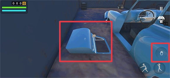 游戏开始后,玩家得把所有汽车零件都装到车上。点击屏幕上的手掌按钮,就能拾取这些零件了。