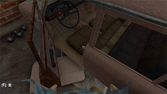打开车门后,保持视角准心对准车内的座位,然后再次点击拳头图标,这样就能进入车内并坐到驾驶座上了。