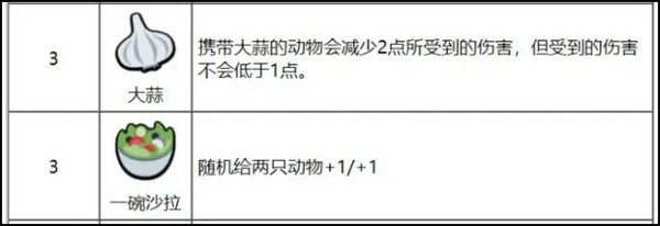 三本食物 Garlic/大蒜:自身受到的伤害减少2点