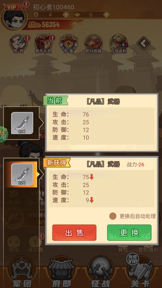 通过点击训练可获取装备,穿戴后可提升战力;