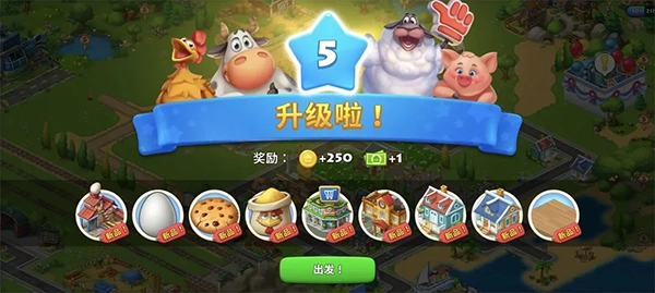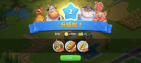 按照引导完成小麦播种和奶牛喂养后,会直接升级到2级,这一步属于引导强制流程。