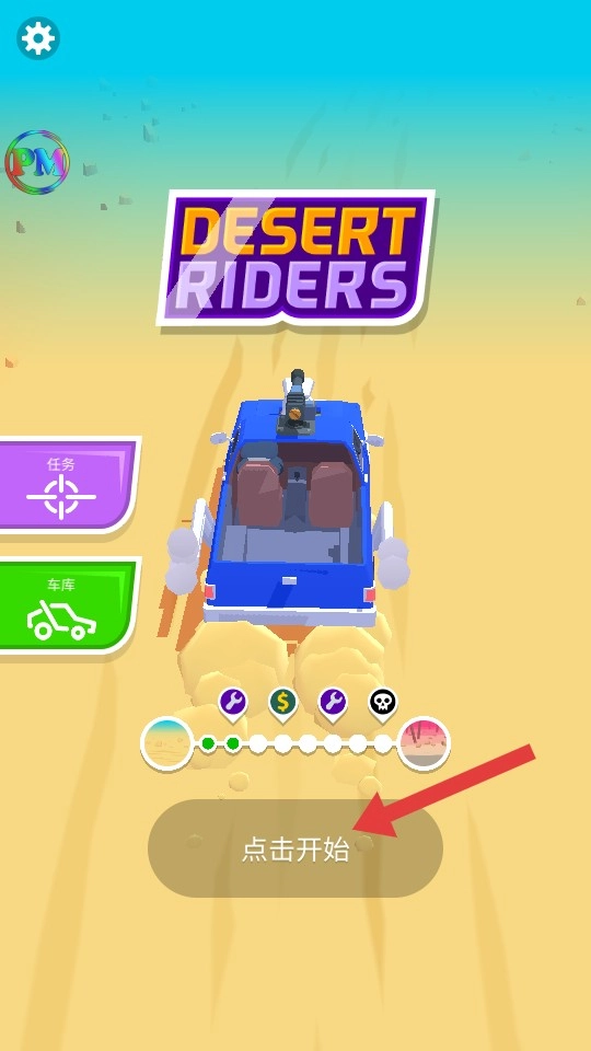 进入游戏后,点击【点击开始】按钮,即可开启沙漠汽车射击对战。