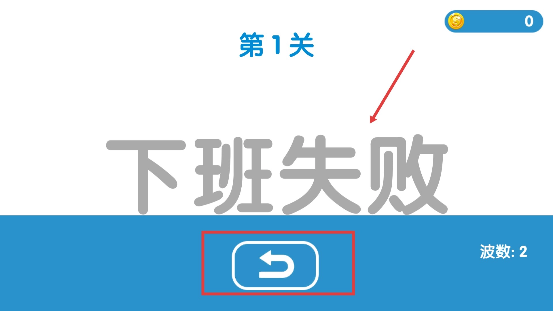 要是遇到【下班失败】的提示,就点击重新开始按钮再一次挑战关卡,通过积累经验来顺利完成打卡下班。