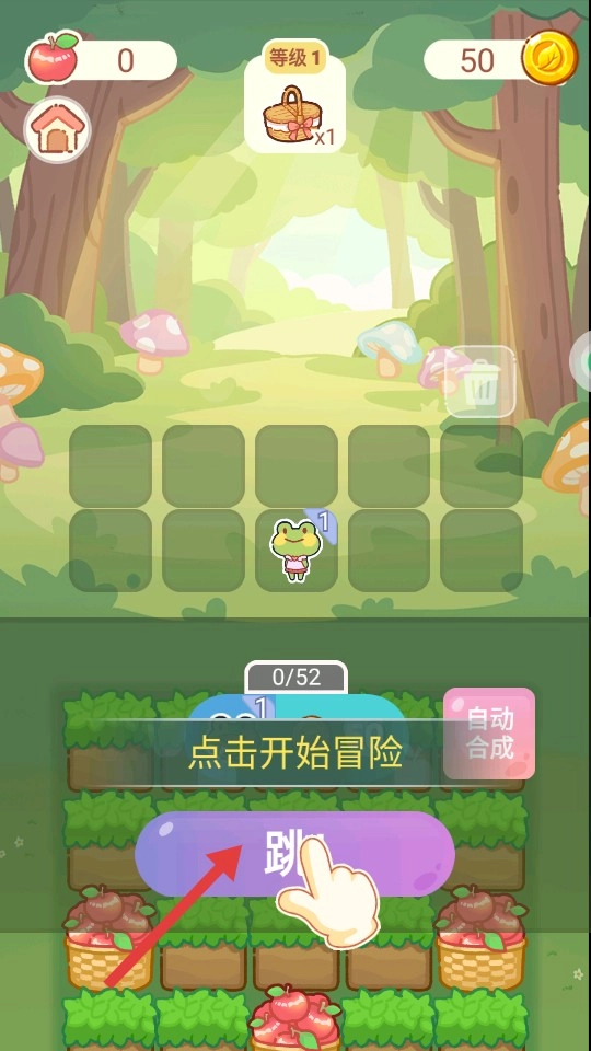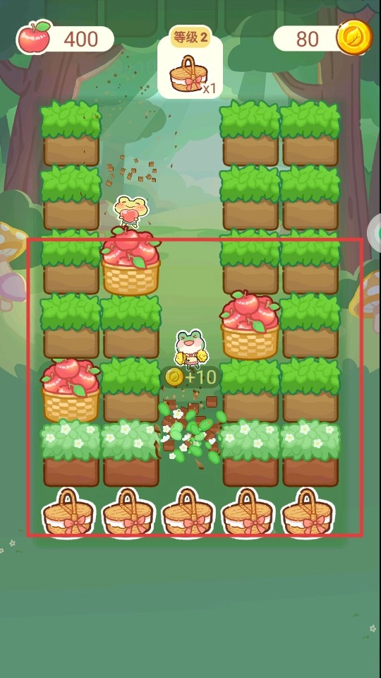 让角色一边收集苹果,一边清理障碍物,以此积累资源并提升等级。
