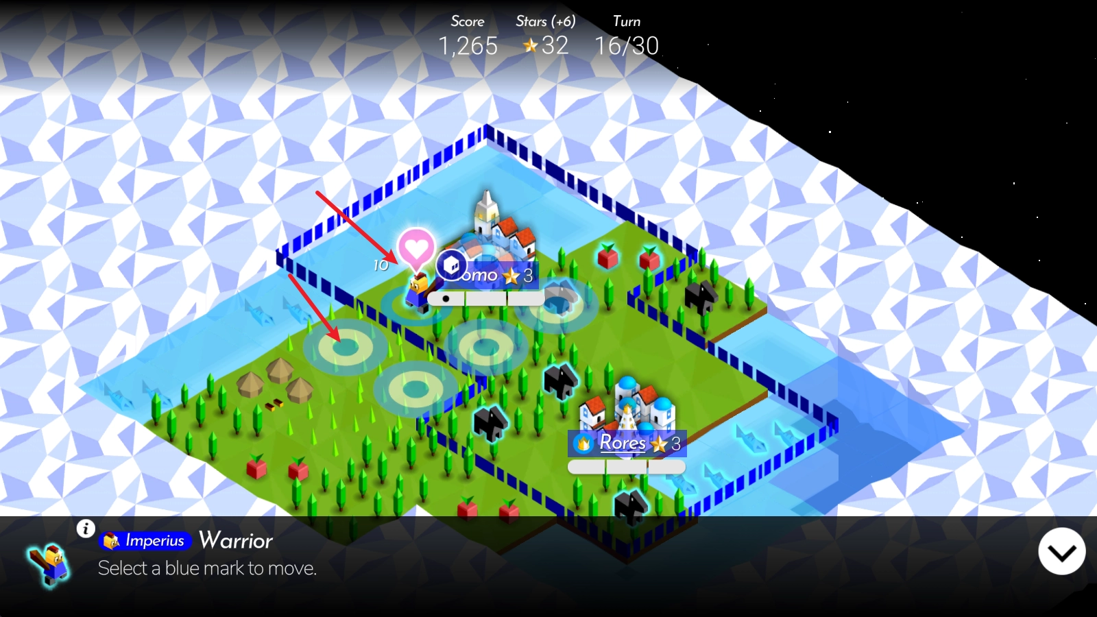 每一回合,我们都能让自己的士兵向周围进行各自的行动。