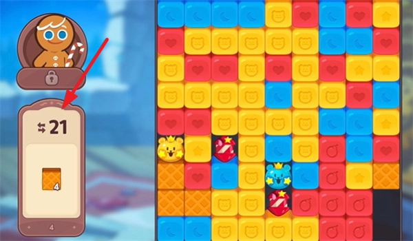 进入游戏后,玩家可消除关卡内的方块,当消除数量达到4个及以上时,就能得到一个饼干人。