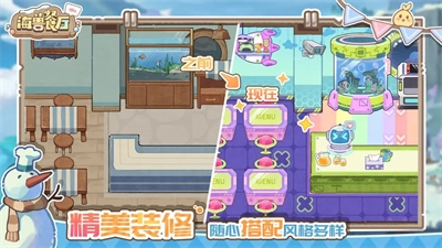 《海兽餐厅》是一款格外有趣的模拟经营游戏。在游戏里,玩家将开启一段海边经营专属餐厅的奇妙体验——各式各样可爱又精致的海洋生物会纷纷来到餐厅,品尝你亲手制作的美食。这里有许多精致可口的餐品,制作步骤都很简单:玩家只需根据客人心仪的餐品需求进行制作,在限定时间内完成并递送到客人手中,就能收获丰厚的金币。随着游戏推进,你可以不断解锁更多新鲜食材、升级餐厅设施,进而获取更多金币,沉浸式地畅游在属于自己的餐厅经营小世界里。