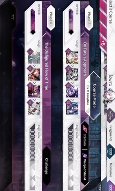 世界模式:玩家可通过闯关来解锁不同的曲目、角色与剧情章节,推进过程需消耗体力值。