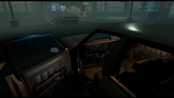 拿到钥匙后,从这栋建筑里出来,走到你房间门口停着的那辆车跟前,用左键打开车门,再用左键坐进车里,接下来就进入正题了: