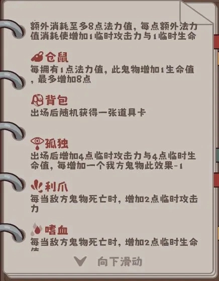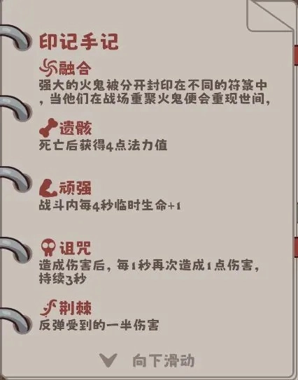 鬼物自带的特殊效果。每个鬼物天生都有一个刻印,在对局过程里,能借助献祭、缝合这类方式,对鬼物的刻印进行新增或修改。关于刻印的具体效果,说明如下: