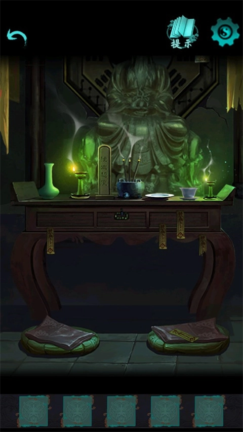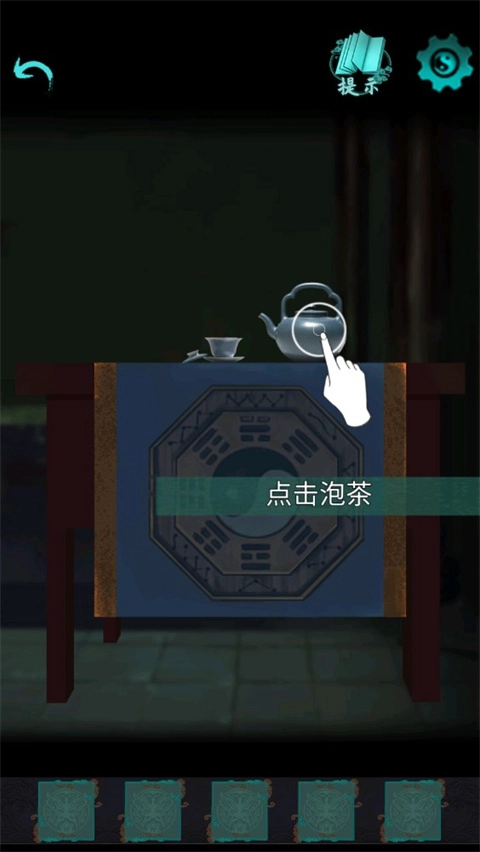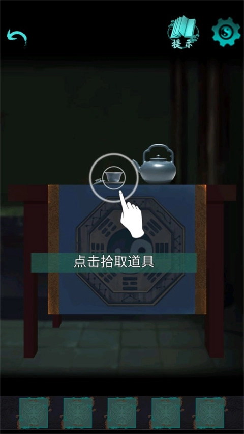 根据线索,将【符咒】放入火盆,拾取【茶壶】。