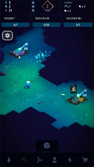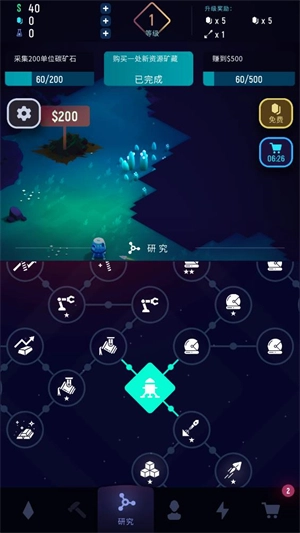 点击下方的研究选项,消耗矿石与金币即可解锁各类科技,这些科技能助力你更高效地采集矿石。