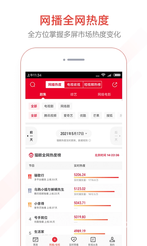 实时电视收视:可实时查看关注情况、实时市场占有率等相关收视数据。