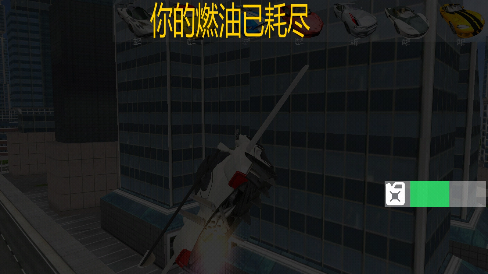 请注意查看左上角显示的剩余燃油量,一旦燃油耗尽,就会停止运行。