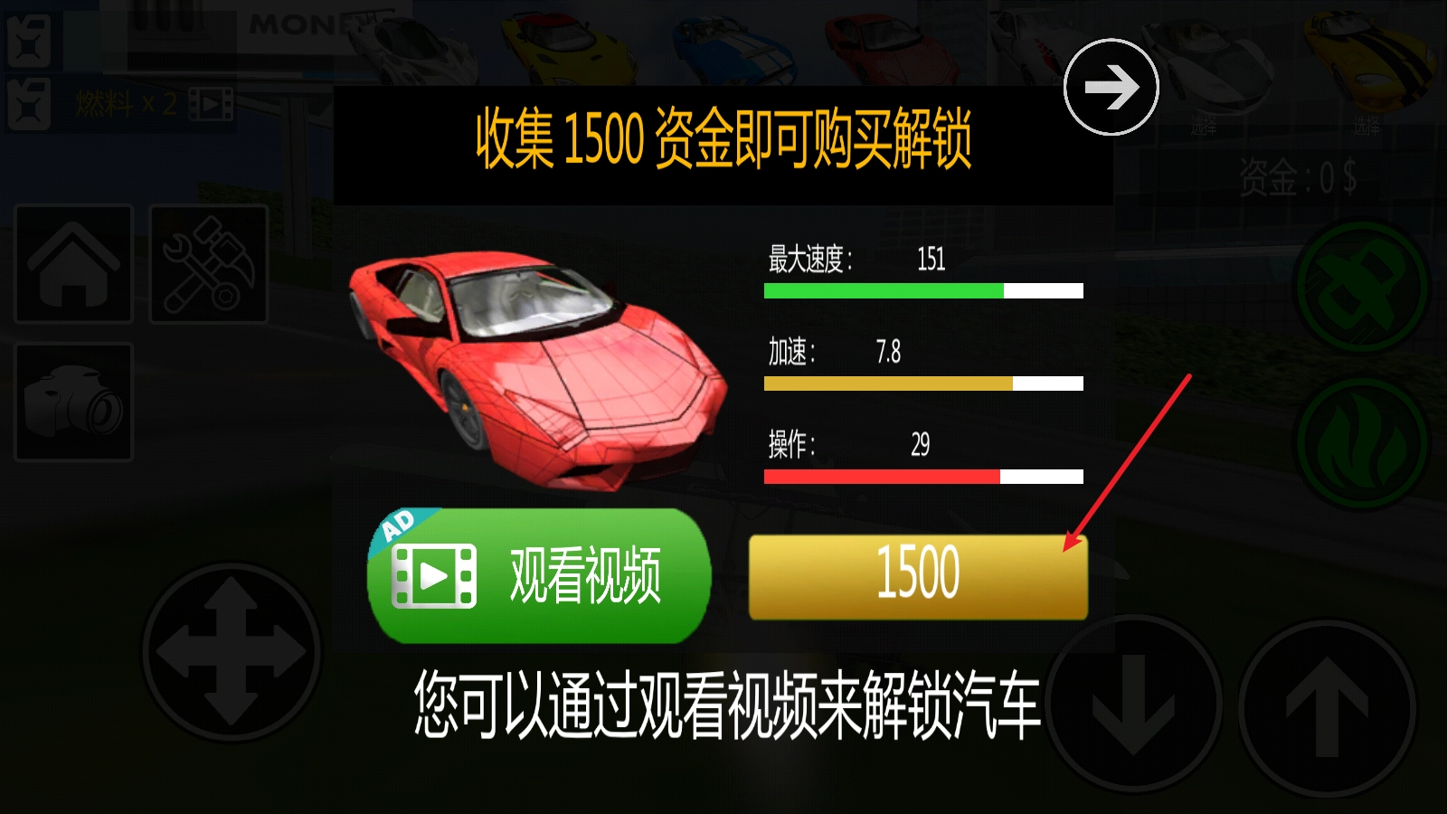 新车需要花费金币或者观看广告来解锁。