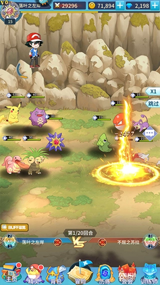 踏入游戏即刻开启冒险征程,开局便能唤起你对精灵宝可梦的经典回忆。在这里,你将以一位“迟到”的训练家身份登场,刚进入游戏就能召唤出专属宝可梦,从此与它携手踏上未知的冒险之路。 获得宝可梦后,冒险便正式拉开序幕:你可以带着它挑战冒险模式中的BOSS,也能选择挂机轻松升级。值得一提的是,首次挑战BOSS时,除了开局抽取的毒刺水母外,还能额外解锁宝石海星作为伙伴,与你一同并肩作战。