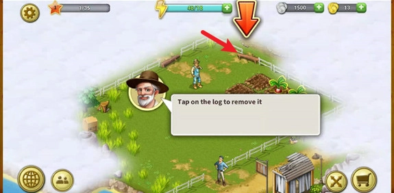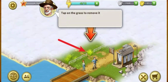 游戏开始后,我们先按照指引操作,把这里的杂草清理掉。