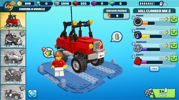 有许多不同的乐高积木赛车可供选择来挑战关卡,有趣的游玩过程会为你带来不一样的体验。