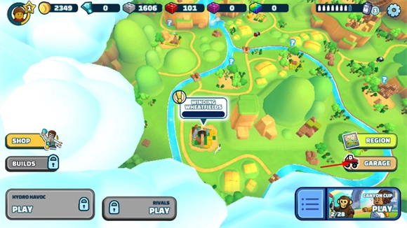 进入游戏后点击右侧的GARAGE按钮进入车库。
