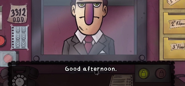 在这款游戏里,要是碰到伪人,就得点击红色按钮拉响警报,之后再拨打D.D.D公司的紧急电话。电话号码会显示在左边的墙上。