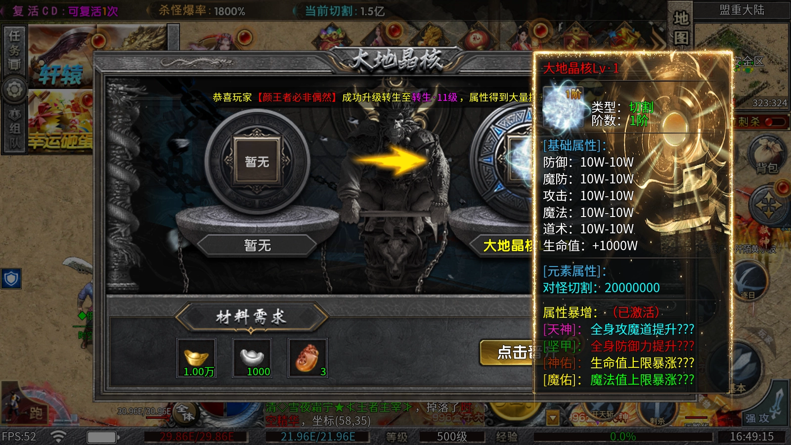 大地晶核:消耗元宝、白银与赤练石就能进行晋升,能够显著增强对怪物的切割伤害。