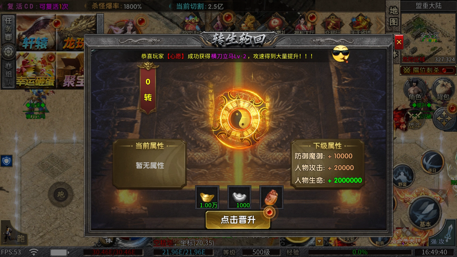转生轮回:消耗元宝、白银与赤练石便能完成晋升,可为角色带来高额的属性提升。