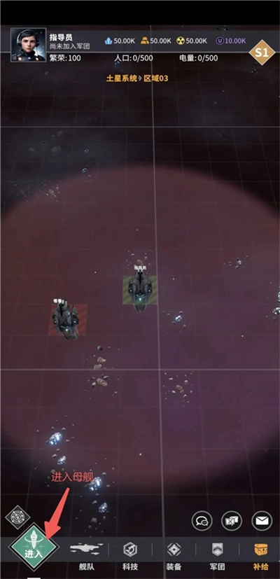 进入赛季地图,屏幕中央会停泊着您的母舰,此时您可以进入母舰,着手创建我们的第一支舰队。
