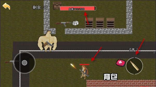 修狗地铁逃生是一款模仿PUBG热门模式“地铁逃生”的魔性小游戏。在游戏里,你需要操控狗狗展开趣味射击逃生之旅,途中能拾取各类丰富的道具与武器。既要一路击败敌人,又得寻找机会收集充足物资兑换监控币,以此购买更多武器强化自身,应对接踵而至的挑战!