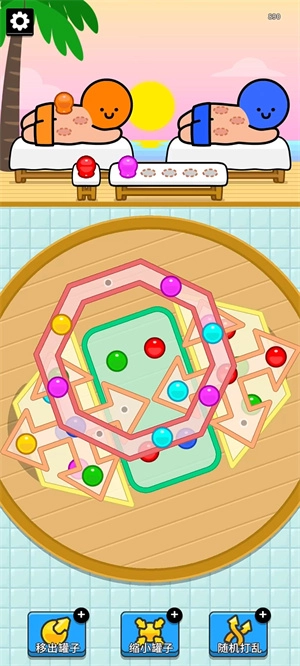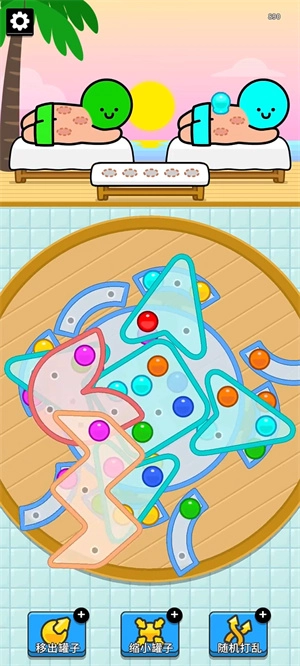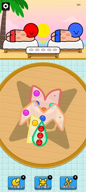 游戏里总共有三个道具,分别是移出罐子、缩小罐子和随机打乱,它们的效果都很不错。