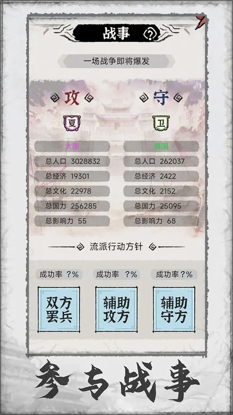 投身战事,谁说文人无战场?在这里,你能凭借流派的影响力加入各方势力的交锋,还能以自己秉持的方略影响战事的发展方向。