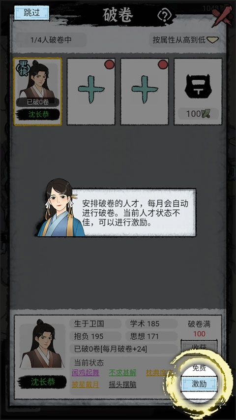 玩家在游戏里会接触到多种多样的玩法,像文字战争、舌战群儒都包含其中。玩家得招揽人才,提高流派的声望,每一位人才都具备不同的属性,比如寿命、抱负和忠诚度等,玩家要综合考量这些方面来进行招揽。不同势力之间的人才有着不一样的特点,有的侧重于学术,有的侧重于思维,还有的侧重于抱负,作为一派的首领,在不同阶段吸纳合适的门生,也能够增强学派的竞争力。