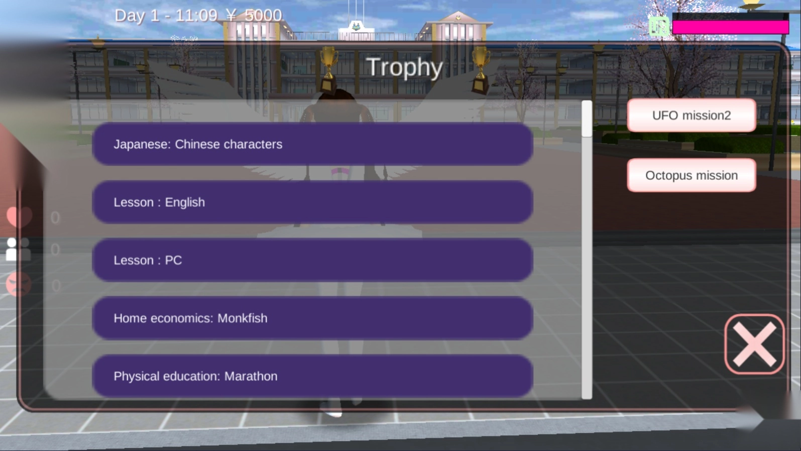 进入樱花校园模拟器英文版的最新版本游戏后,我们能在页面左上角找到【mission】任务选项,点击它就可以了。