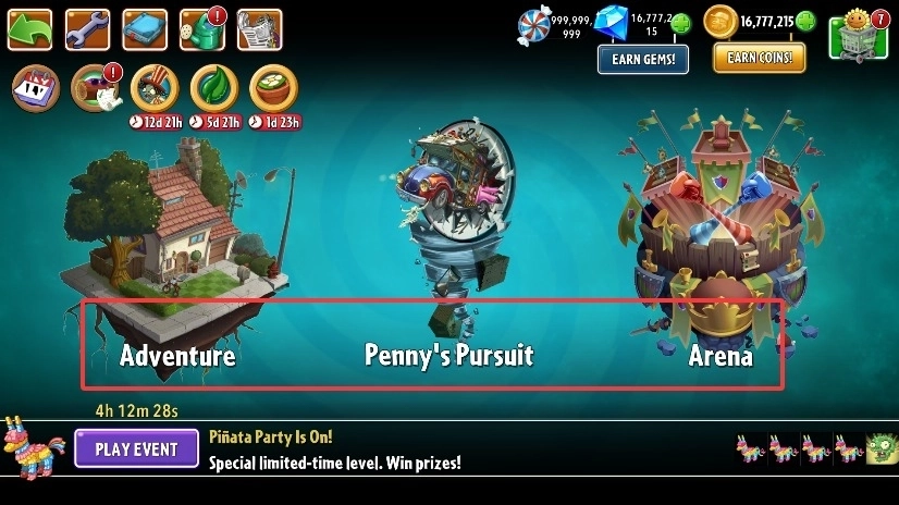 在模式选择界面选定挑战类型,这里涵盖了冒险关卡、迷你游戏、生存模式等丰富多样的玩法。