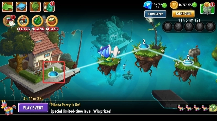 在叙事设计上,这款游戏摒弃了前作的线性推进模式,转而允许玩家自由探索地图。除了核心主线关卡外,还设置了多个分支关卡,这些分支关卡需要玩家收集足够的钥匙或星星才能解锁进入。完成支线关卡后,玩家可以获得额外奖励,其中不仅包括全新的植物,还有各类功能升级,比如增加卡片槽数量、提升初始阳光值以及获得小推车等。这些奖励在地图界面中随时可见,查看起来非常便捷。