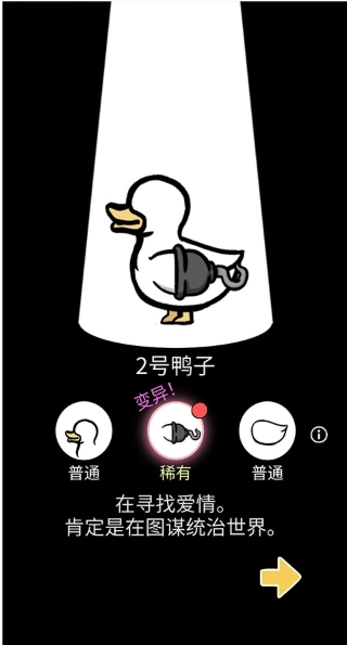 点击鸭蛋可以孵化出鸭子,在孵化过程中,鸭子会发生基因变异,每一代都有机会出现新的变异品种。