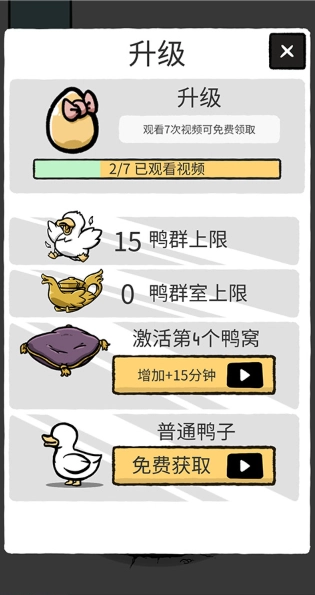 在升级页面里,按照页面给出的指示要求完成鸭子上限的提升