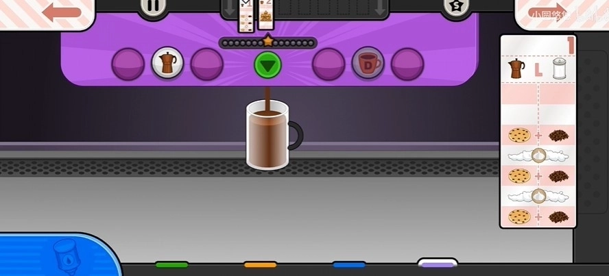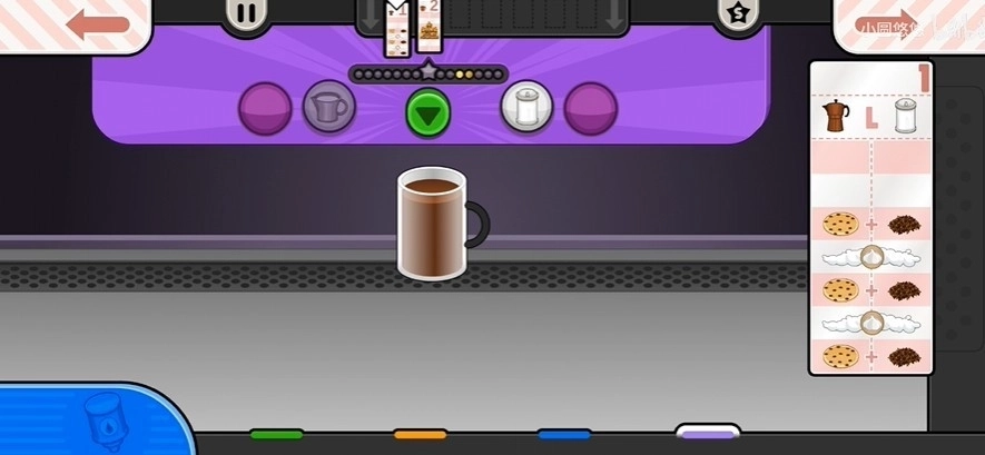 挤好酱汁后,点击屏幕右侧的绿色按钮,接着按照顾客的要求为其配置饮料。配置时要注意订单上标注的杯子规格——s代表小杯,l代表大杯,根据订单显示选择对应的杯子即可。